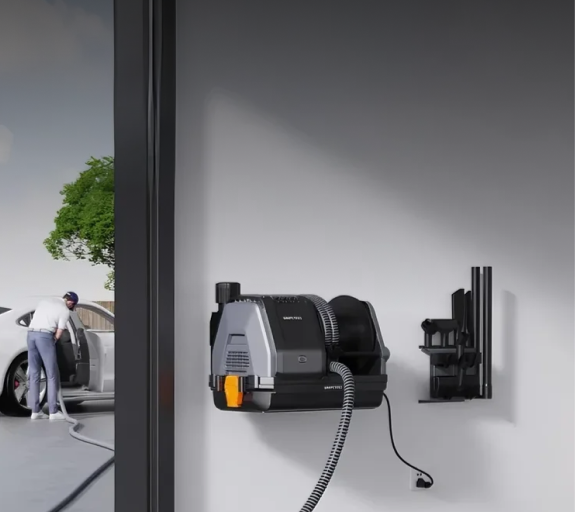 Garages, basements, or home workshops are often the toughest areas to keep clean. Grandstorm's specially designed wall mount vacuum system is the perfect solution for these environments. Storing the main unit and all accessories neatly on the wall not only frees up valuable floor space but also ensures the vacuum is always ready to go. Combined with its long, 30-foot retractable hose, its reach easily covers every corner of a large garage, eliminating the need to drag the main unit around. Cleaning has never been so unrestricted. This design philosophy makes it the ideal garage vacuum for many users.