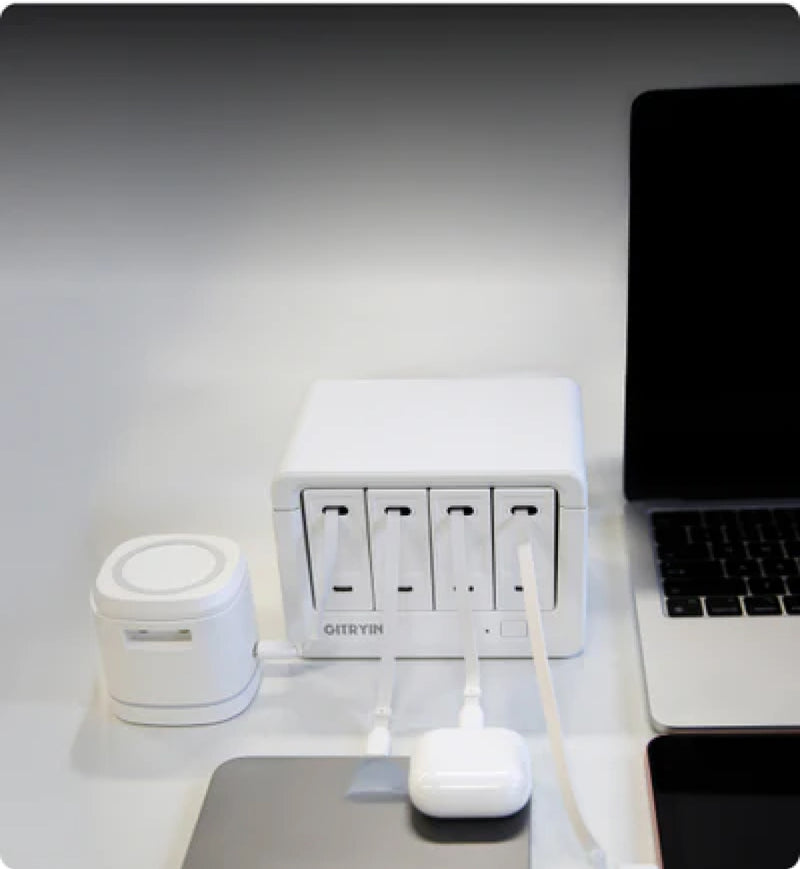 Compact design with advanced auto-retract tech, powering up to 12 devices at once.