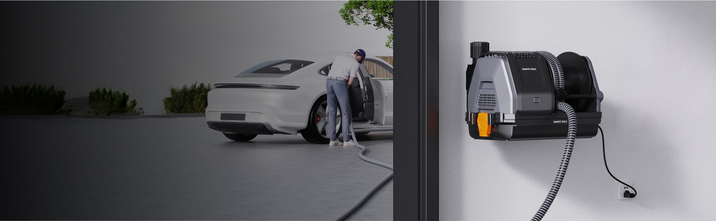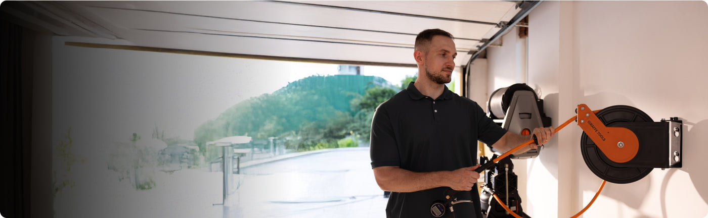 Auto-retract reels and durable hybrid hoses for efficient and tidy garage setups.
