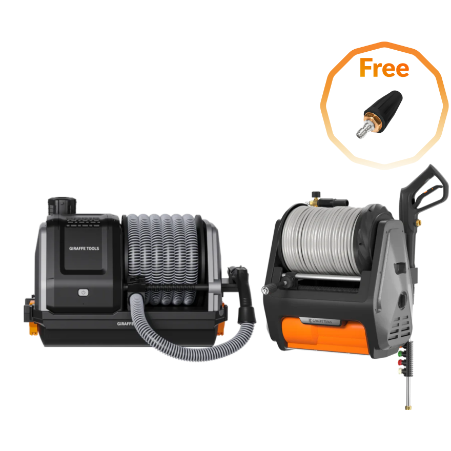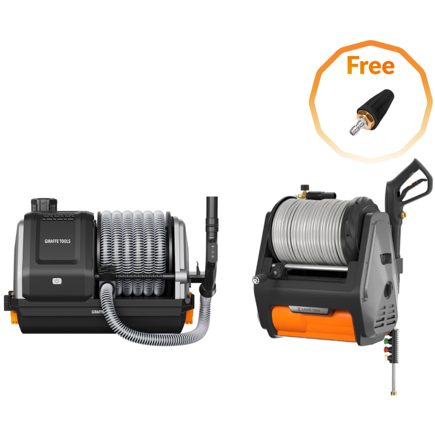 - Extra-Long Reach Coverage: 100ft high-pressure hose + 30ft vacuum hose + 50ft power cord coverage.