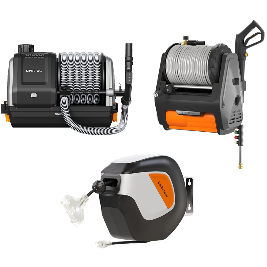 - What's Included: Retractable Pressure Washer Pro +Retractable Vacuum Cleaner+Retractable Extension Cord Reel