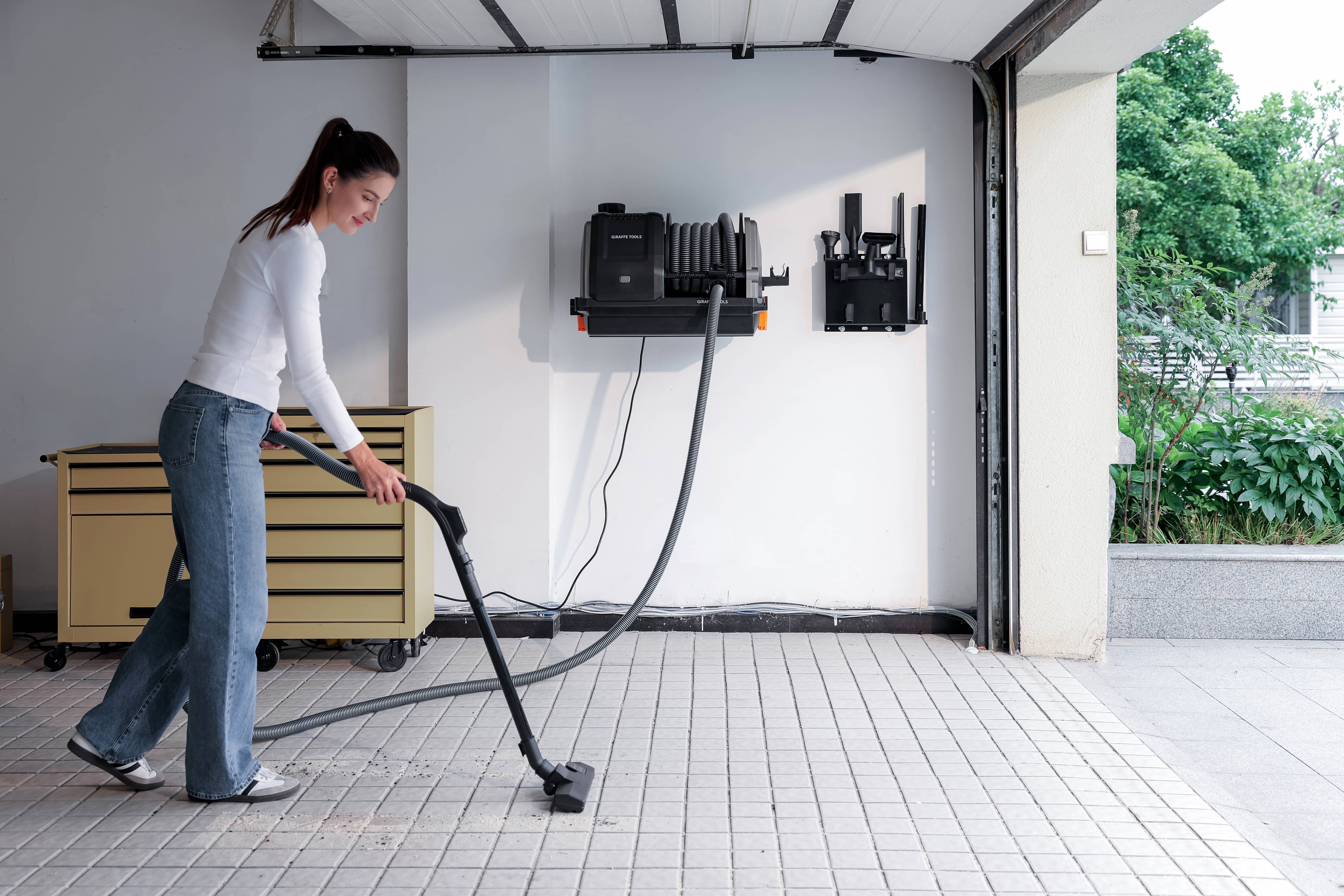 Elevate your garage and ditch dirt, mess, and tangled cords — with one cleaning system.