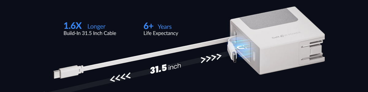 [Built-in 31.5-inch Flat Cable] The charger includes a durable 31.5-inch flat cable with a 3A output, providing efficient and reliable power to your devices. Its extended reach and flexibility make it ideal for various charging scenarios while minimizing wear and tear.
