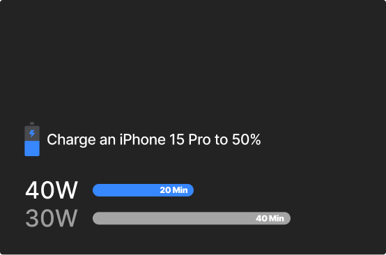 50% Charge in 20 Minutes: Efficient, Consistent Power.