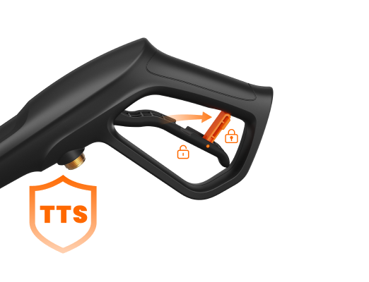 The DS trigger mechanism (Patent) ensures effortless hose retraction, saving time, extending hose life, and enhancing cleaning efficiency.