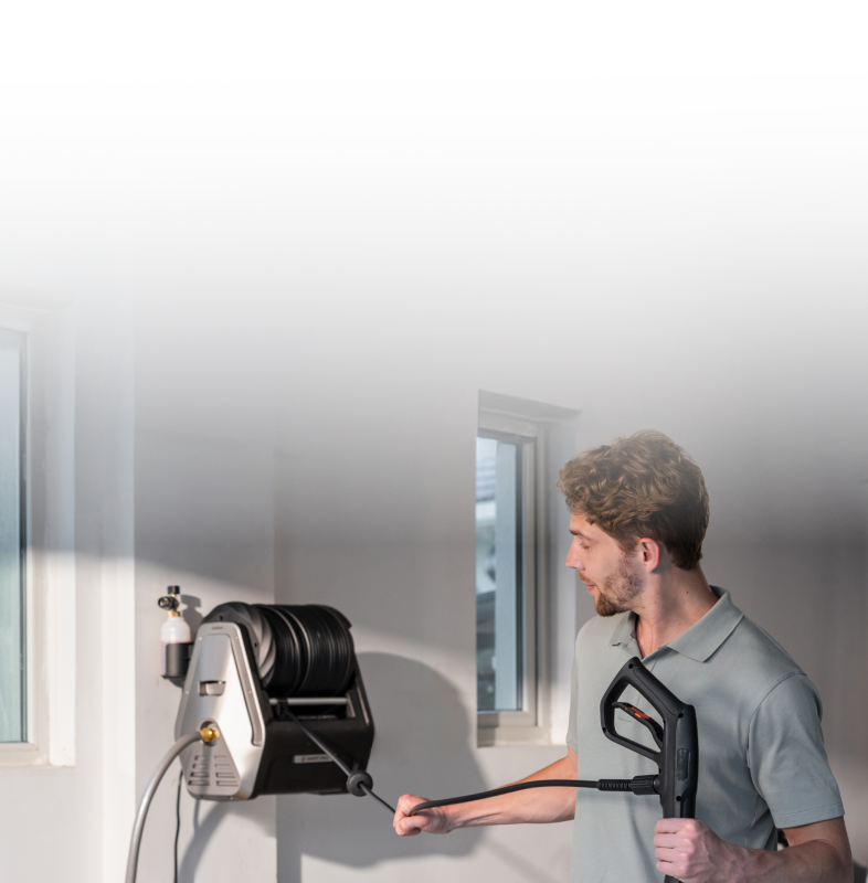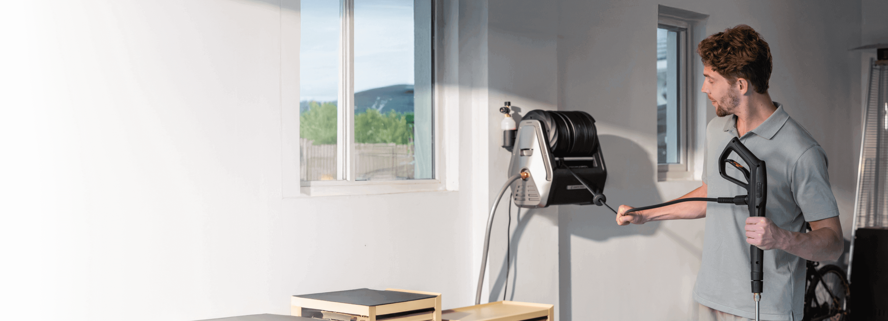 You don't have to bend down and tidy up the messy hose after you finish cleaning. Maintain a clutter-free space effortlessly with automatic hose retraction.
