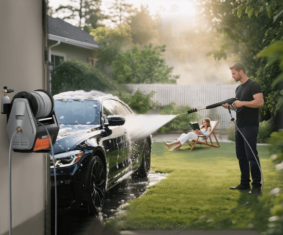 Pro is built for meticulous homeowners, car care enthusiasts, and high-demand cleaning tasks. With up to 3700 PSI, a 100ft retractable hose, and custom TPH springs for superior torque, it offers powerful, quiet, and organized performance right out of the box.