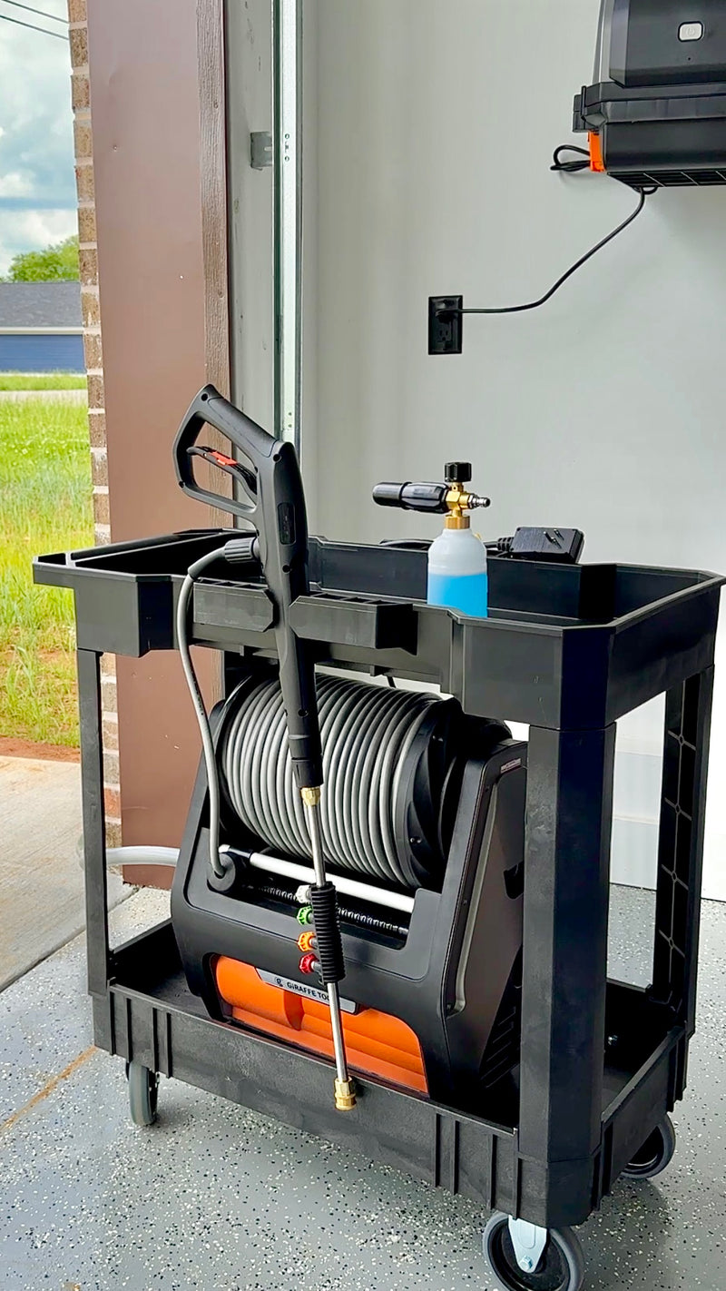 - Wall-Mounted, Fully Organized: Keep your space clean and clutter-free. The wall-mounted design lifts the unit off the ground, while built-in storage compartments hold the hose, spray gun, and nozzles—all in one place. Enjoy the sense of order!