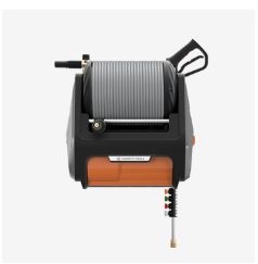 Grandfalls Retractable Pressure Washer Pro comes with a 100 ft replaceable high-pressure hose, making anywhere easy to clean. The auto retracts system makes storage simple and is designed to protect the pressure hose from kinks, snags, and tears, and makes rewinding and unwinding simple.