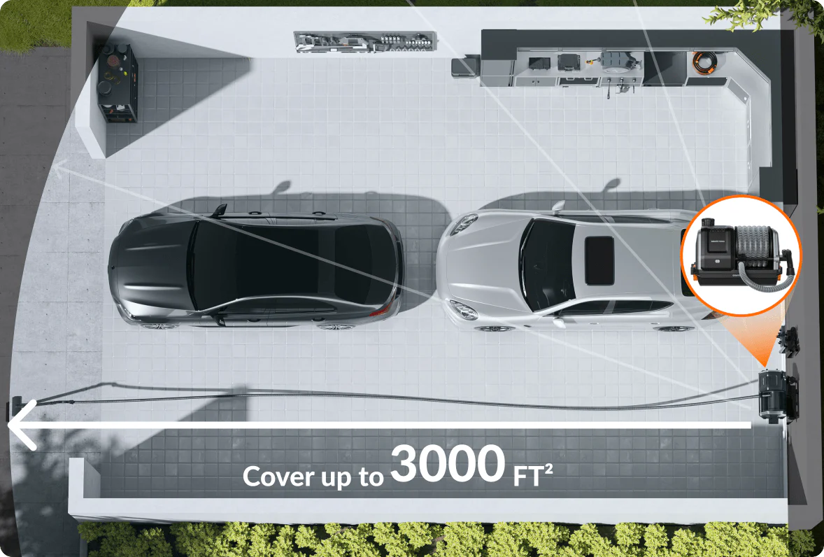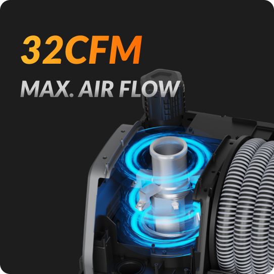 The 30FT hose covers up to 3000 ft² of area, making it perfect for larger rooms, garages, or workshops. No need to move the vacuum around—just focus on the task at hand.