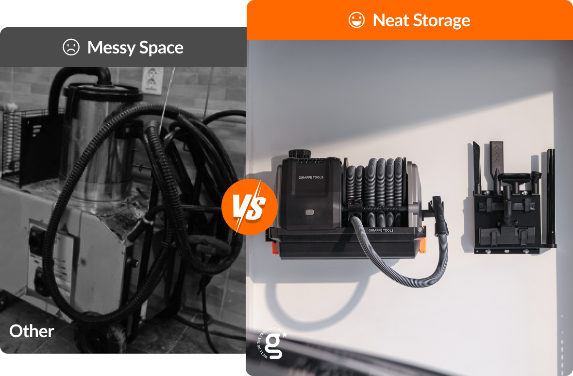Giraffe Tools redefines vacuuming with powerful motor performance and the top-rated auto-retract system, revolutionizing your cleaning routine.