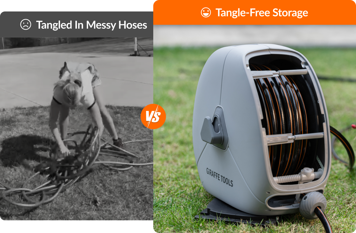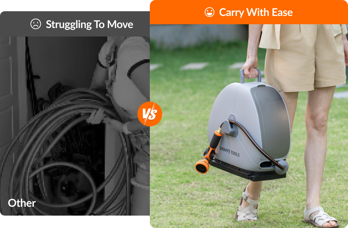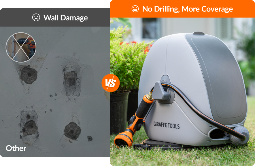 - More Coverage, Hidden Storage: Enjoy 20% more coverage than wall-mounted models. Discreetly hide the reel behind plants, pull out the hose, and lock it at your desired length. A reel that blends in and performs!