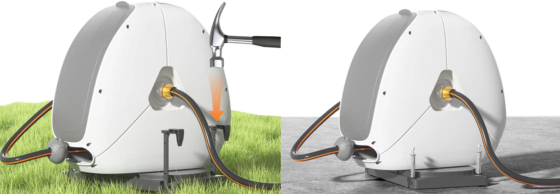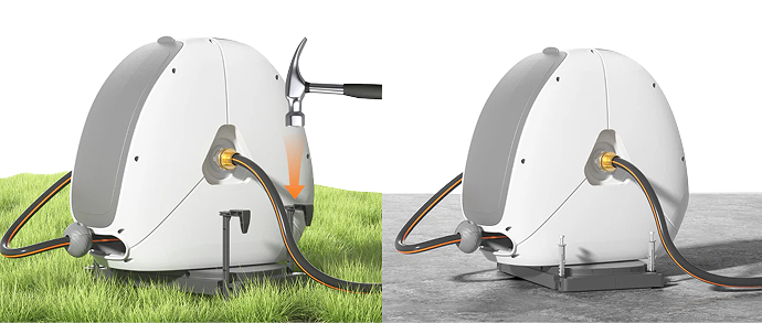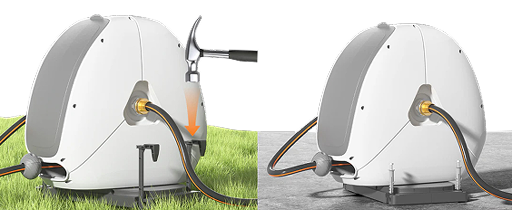 - Easy Installation, No Damage: No wall damage or complicated setup needed! Easily install our reel on the lawn with just a hammer (concrete installation option also available). Its compact and sleek design fits perfectly with any outdoor décor.