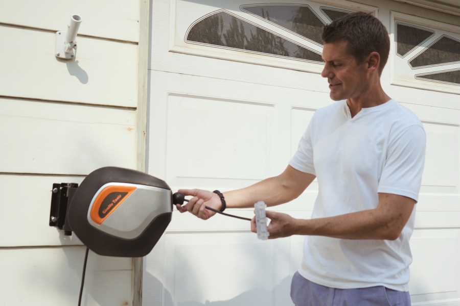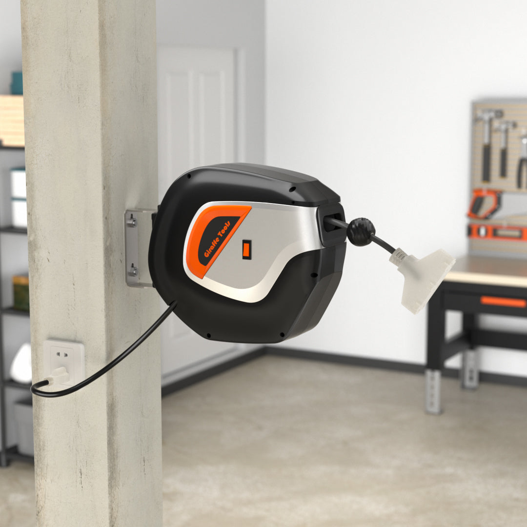 • Auto-Retractable Cord Reel: Give the cord a gentle tug, it can rewind automatically, and you can lock it at any length. It also has an anti-collision ball, which can adjust the length of the exposed length. Make your garage tidy and clean.