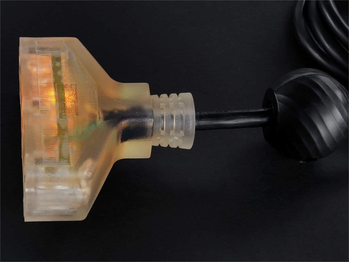 The lighted triple tap outlet show the power status for added convenience and safety.