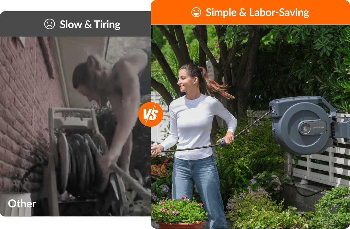 Pull the hose to start watering instantly, then let it retract smoothly when you’re done. Simple. Fast. Efficient.