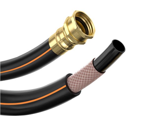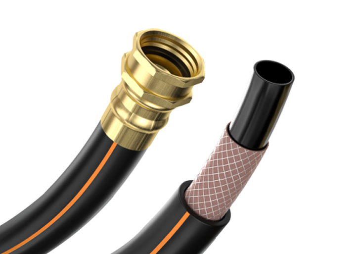 The hybrid blend of polyurethane, PVC, and rubber allows the hybrid hose to be extremely flexible and durable, even in frigid temperatures.