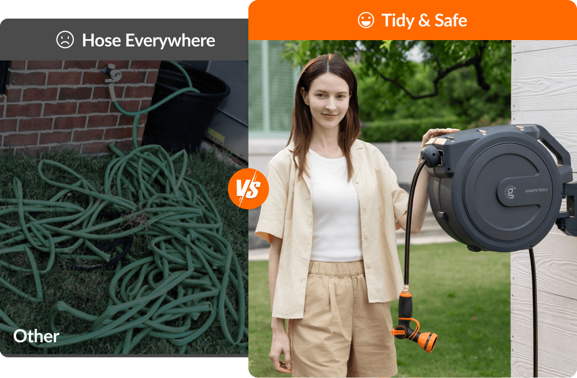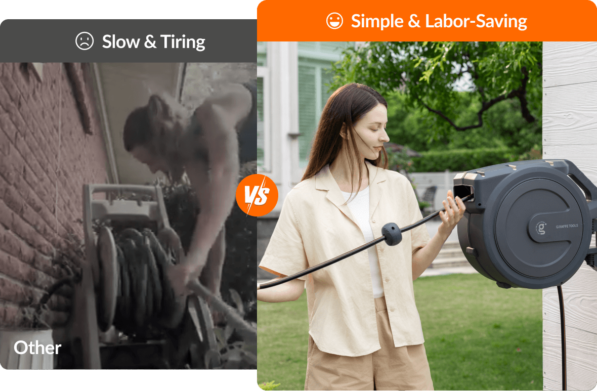 Pull the hose to start watering instantly, then let it retract smoothly when you’re done. Simple. Fast. Efficient.