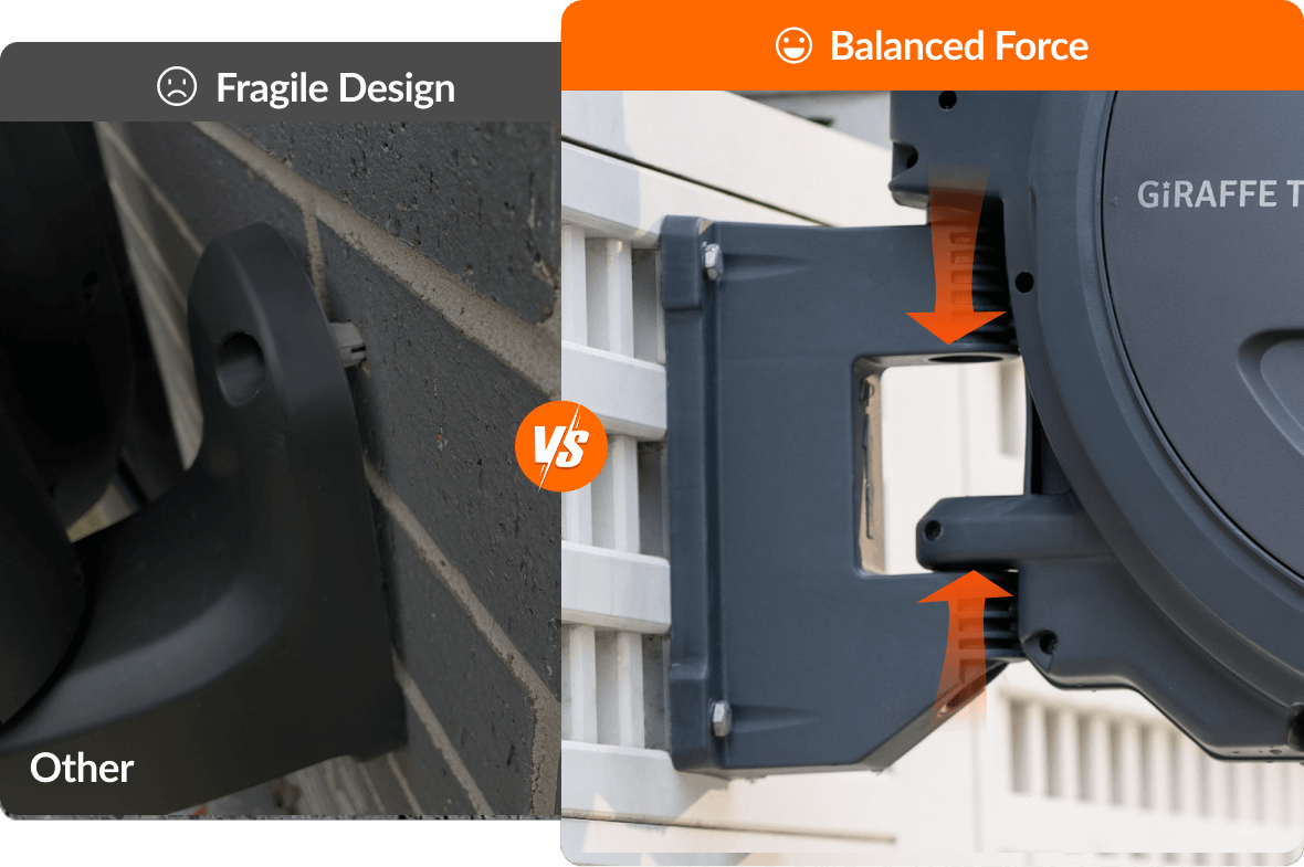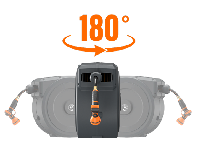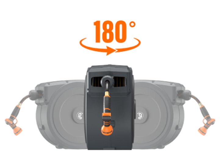 The 65ft - 155ft all-weather hose is flexible, abrasion-resistant, and pressure-tested (116 PSI working, 600 PSI burst) for leak-free, long-lasting performance—no kinks, no cracks, no matter the season. - Full Yard Flexibility, Cover Every Corner: The 180° swivel bracket lets you water every corner of your yard or driveway without moving the reel. It follows your lead when needed, and stays locked in place when not. Post-mountable design also supported—just ensure the post is larger than 4×4 inches for best stability.