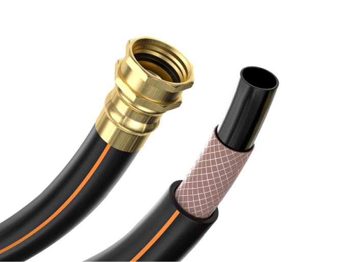 The hybrid blend of polyurethane, PVC, and rubber allows the hybrid hose to be extremely flexible and durable, even in frigid temperatures.